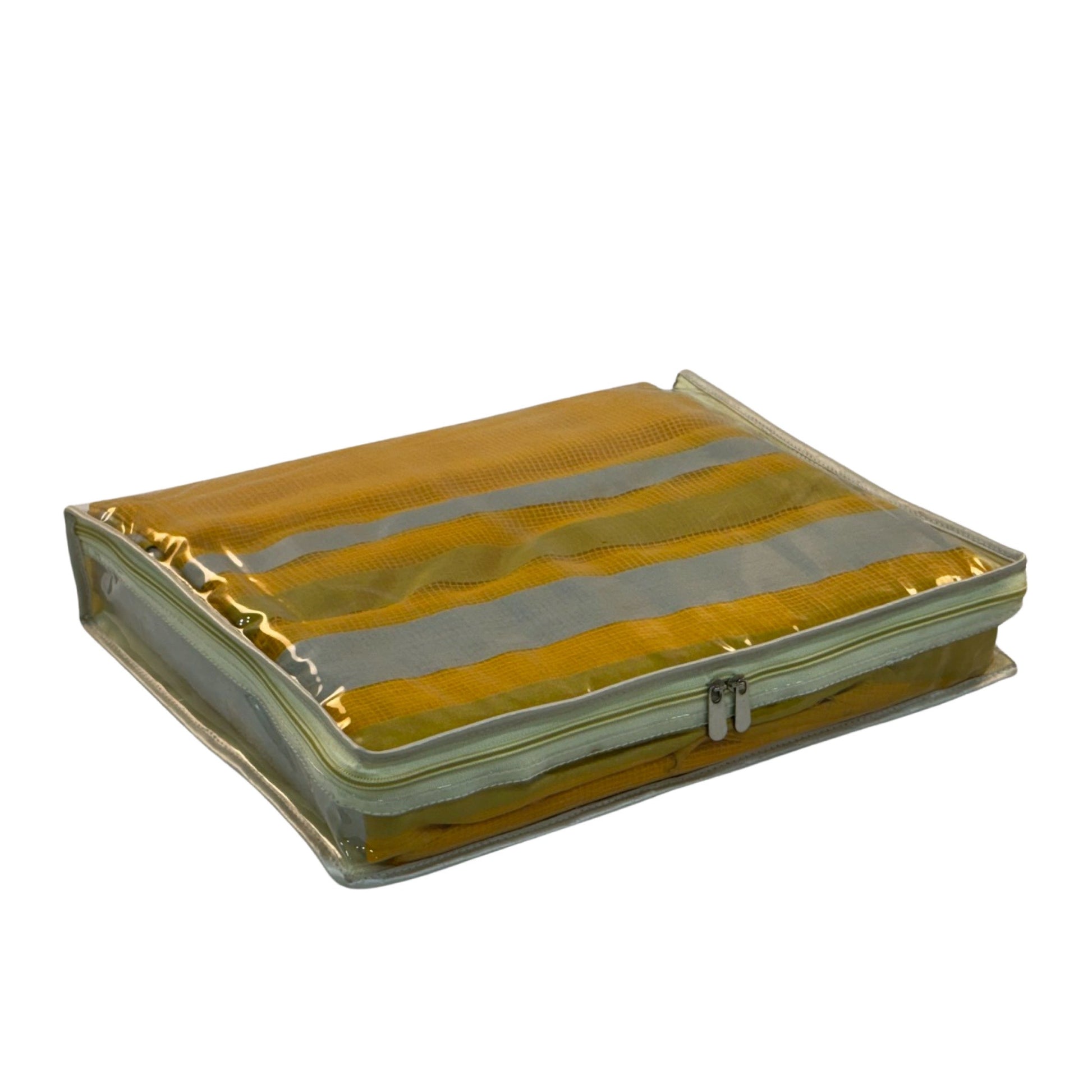 Keep your set of saree, blouse and petticoat together with our saree organizer , use these for traveling or for keeping your wardrobe organized. You can also keep two saree together with this organiser.Keep your sarees organized and protected from dust and dirt with this must-have accessory