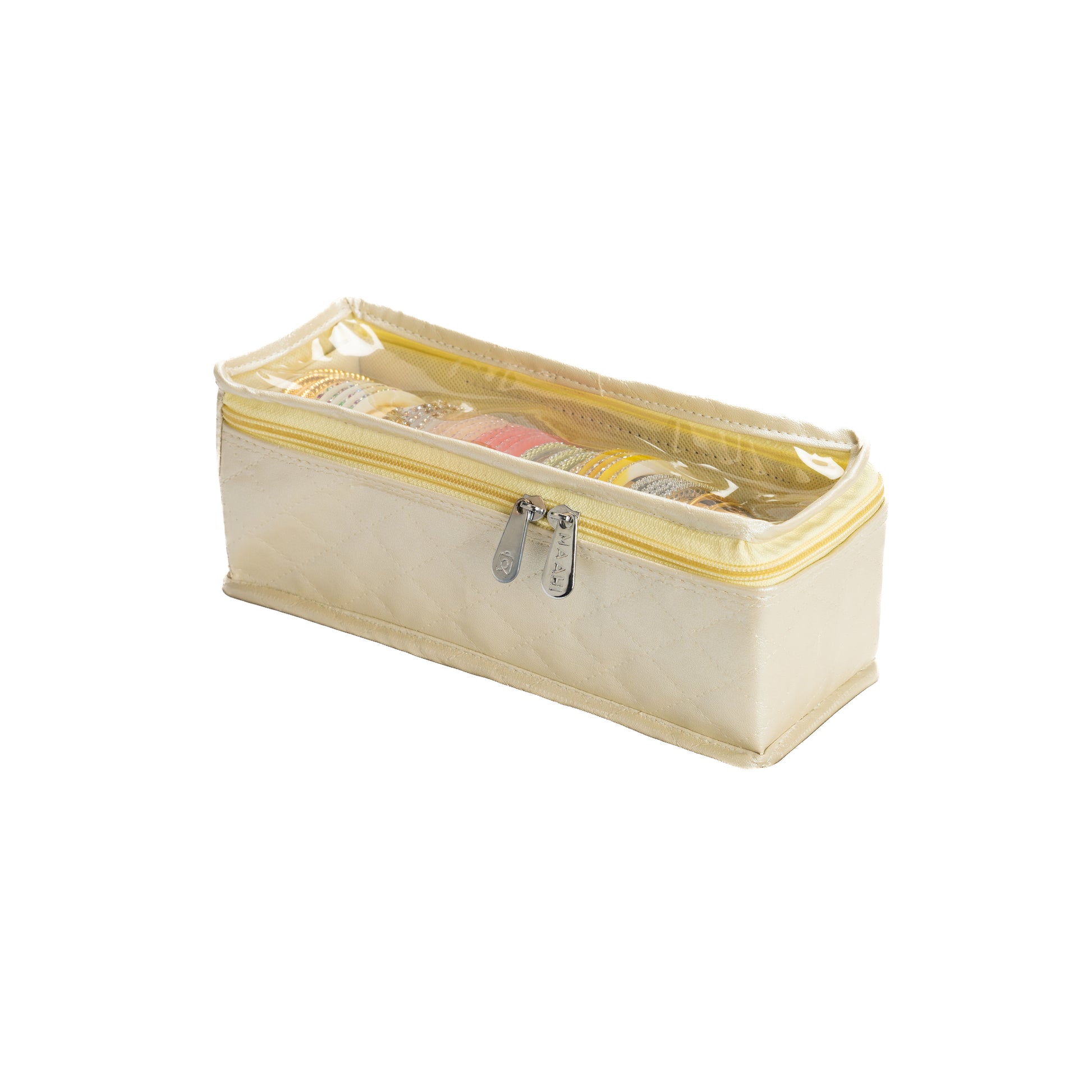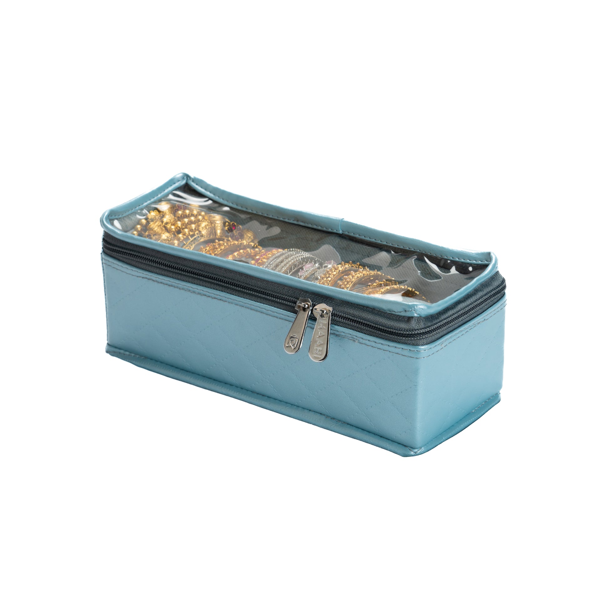 This Organizer can be used to store and organise your bangles, bracelets and watches. It comes with a sinlge roll which holds upto 30 bangles. Without the roll, it can also be used as a multipurpose pouch.