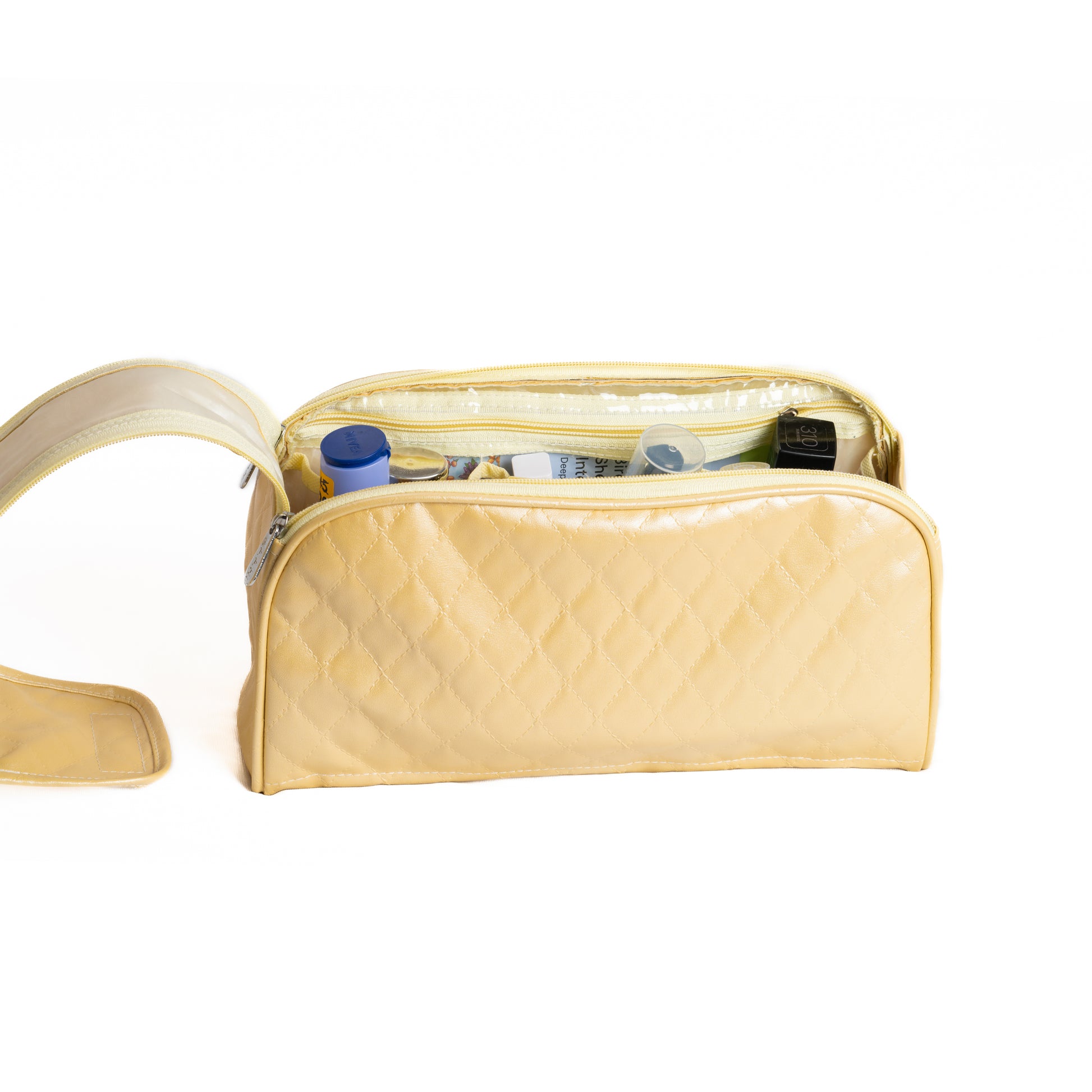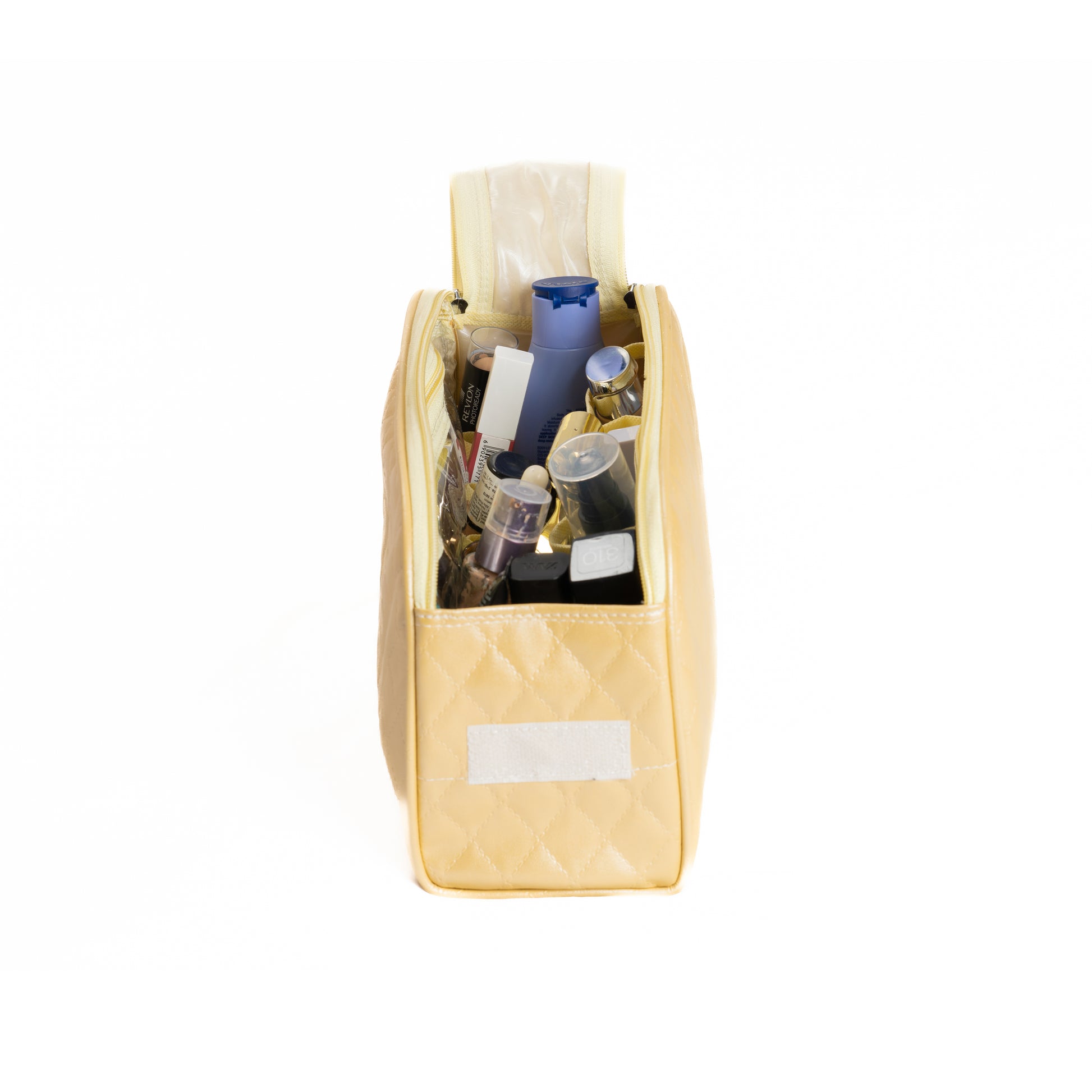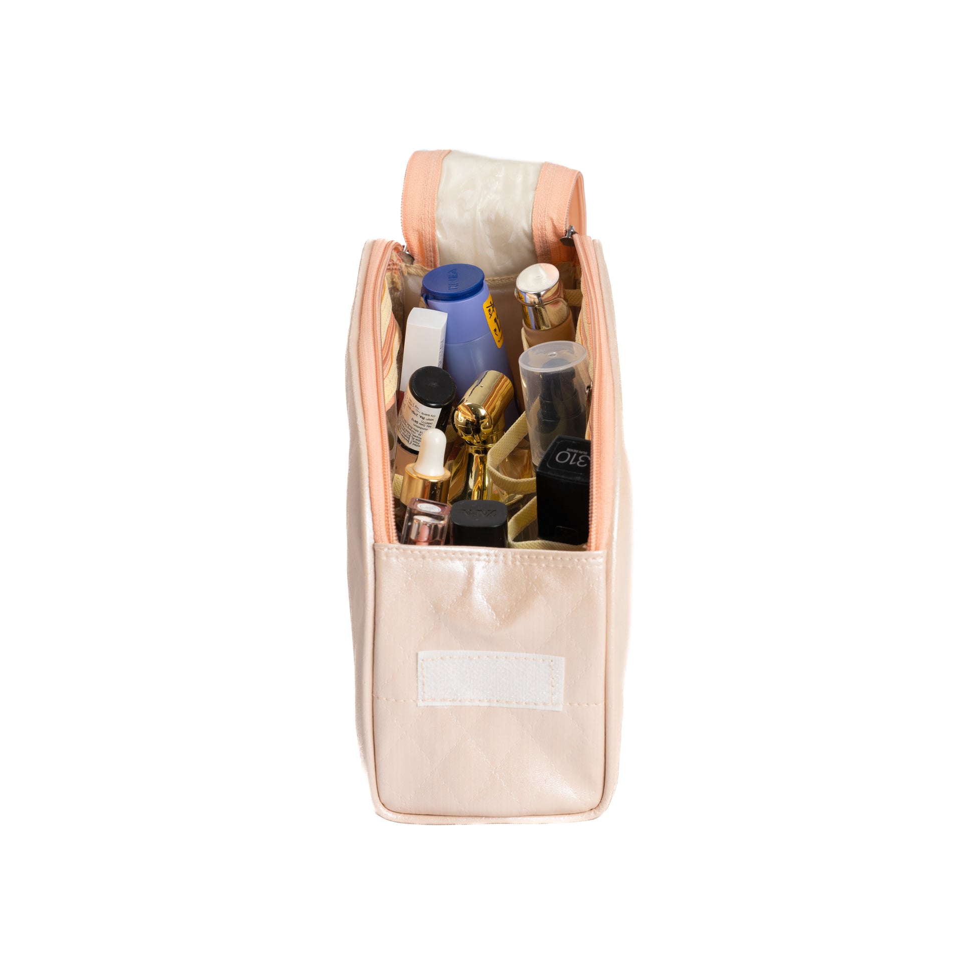Large enough to hold all your toiletries and cosmetics, its very compact so it’s a perfect companian for travel.