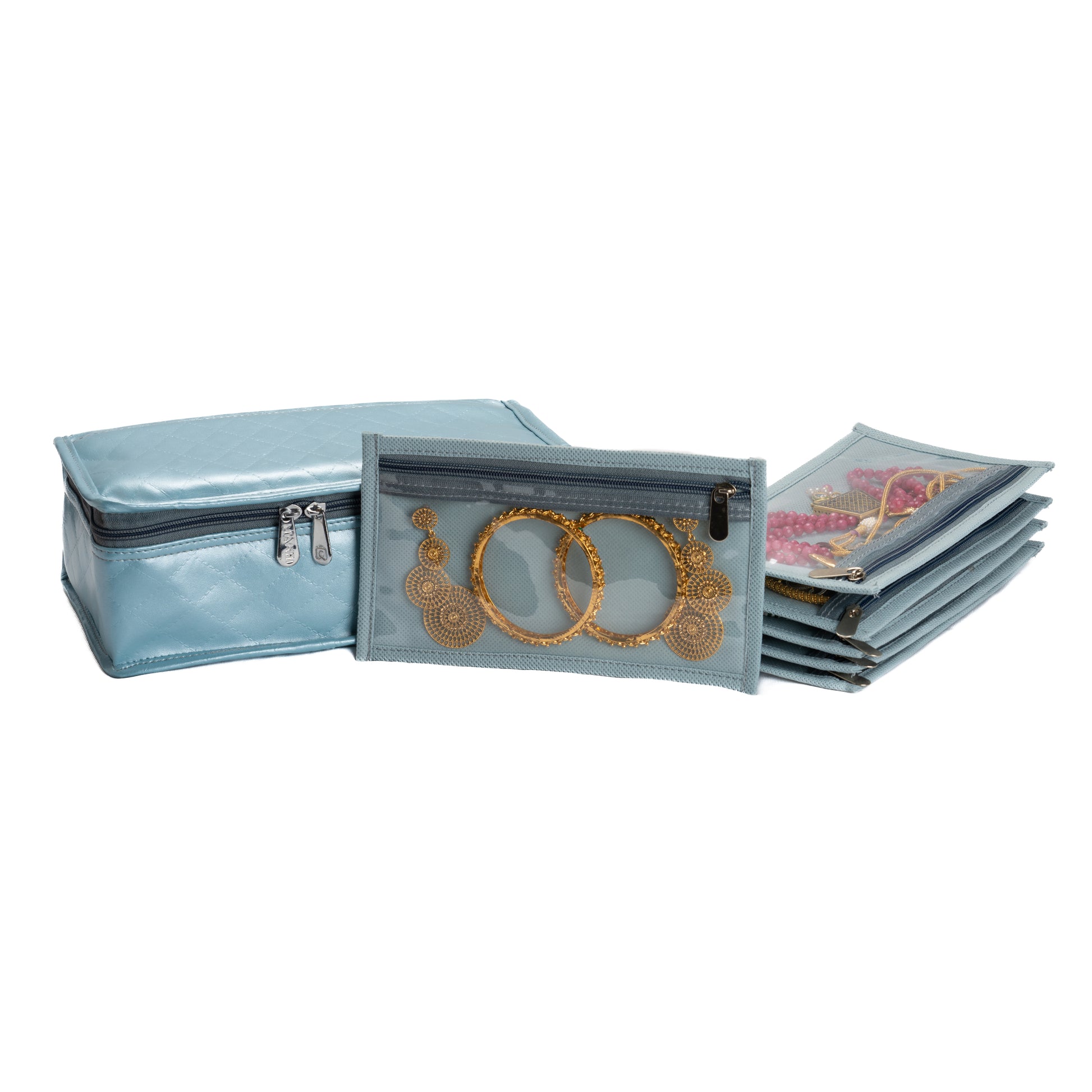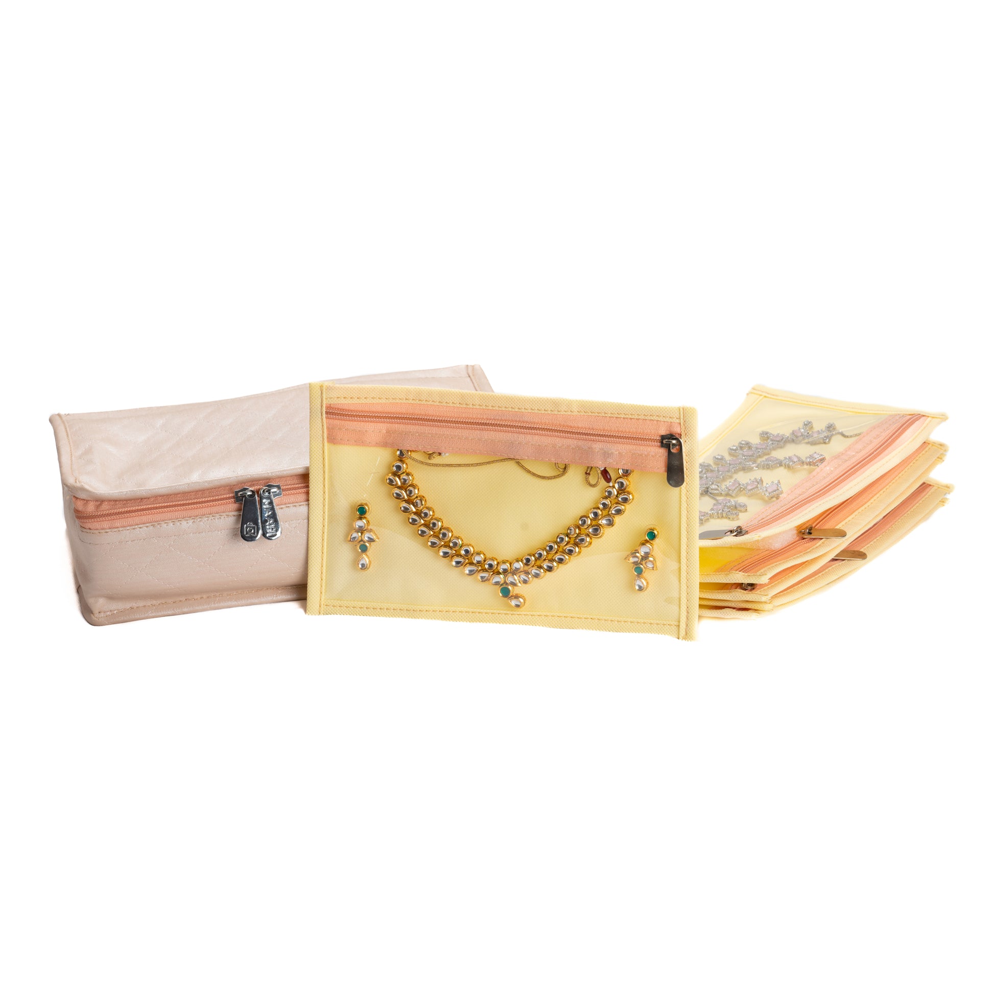 Presenting to you our perfect jewellery Organizer to keep your jewellery in single compact unite. Comes with 6 big Jewellery pouches to store you neckles, Pendant set, earrings and much more, It is the perfect travel companion to carry all your travel essentials in a stylish and organised fashion!