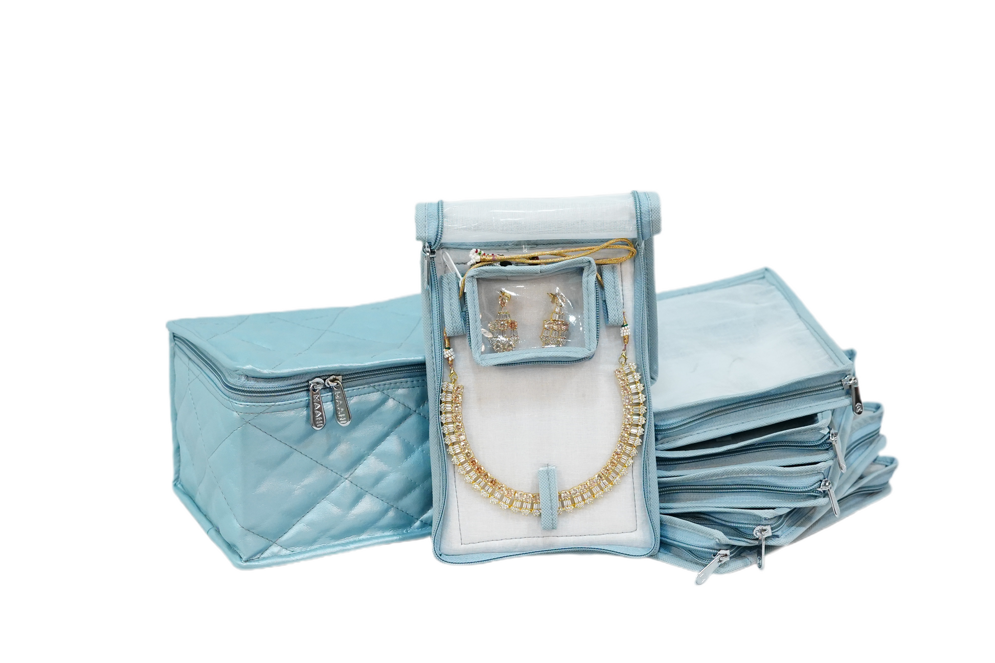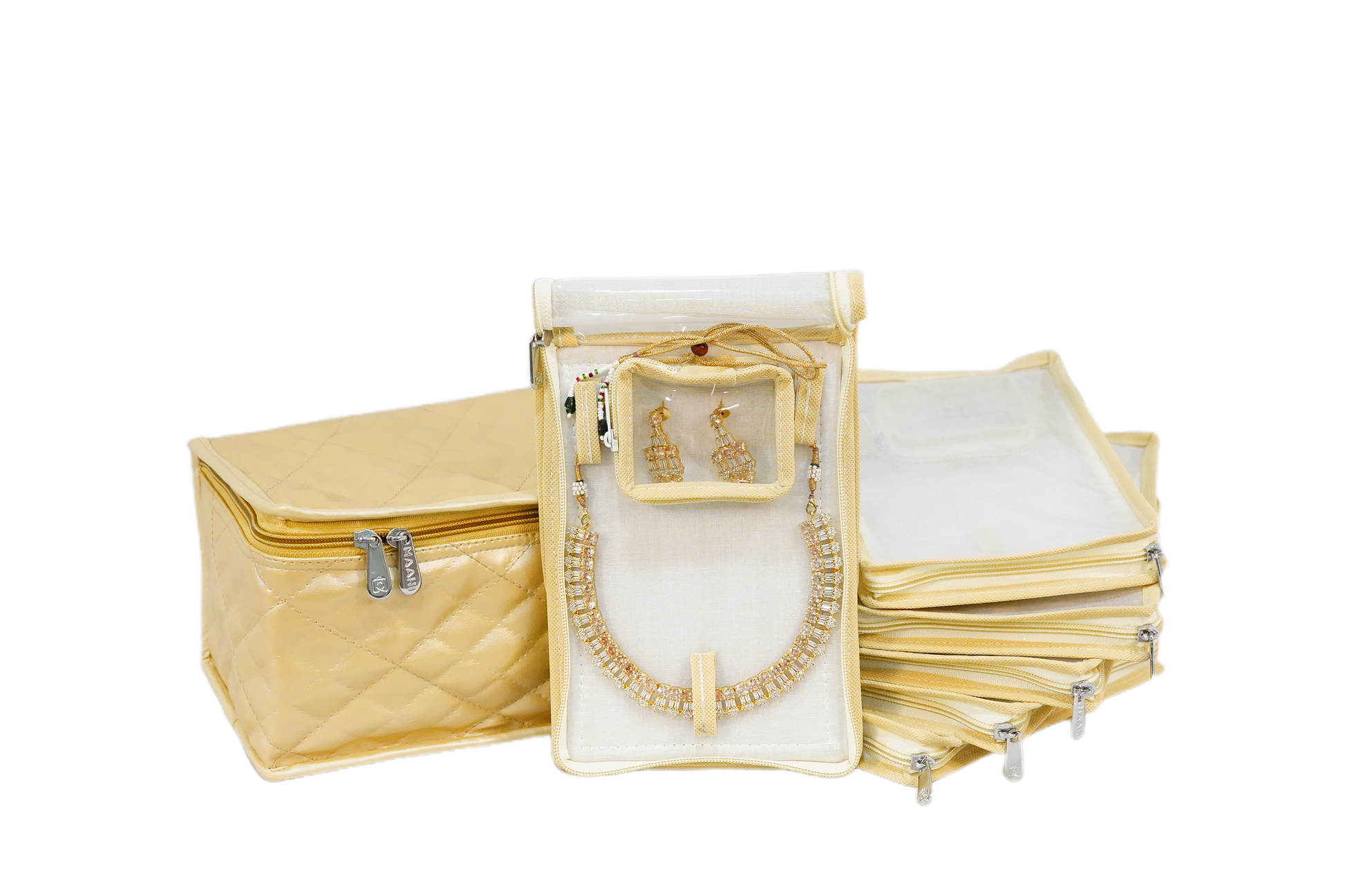 This elegantly designed jewelry storage unit is the perfect solution for keeping your gold jewelry safe and protected. It features six individual cotton pouches to store your pieces separately, ensuring delicate items like earrings are kept safe and tangle-free. The cotton fabric helps prevent tarnishing and discoloration, preserving the shine of your jewelry.