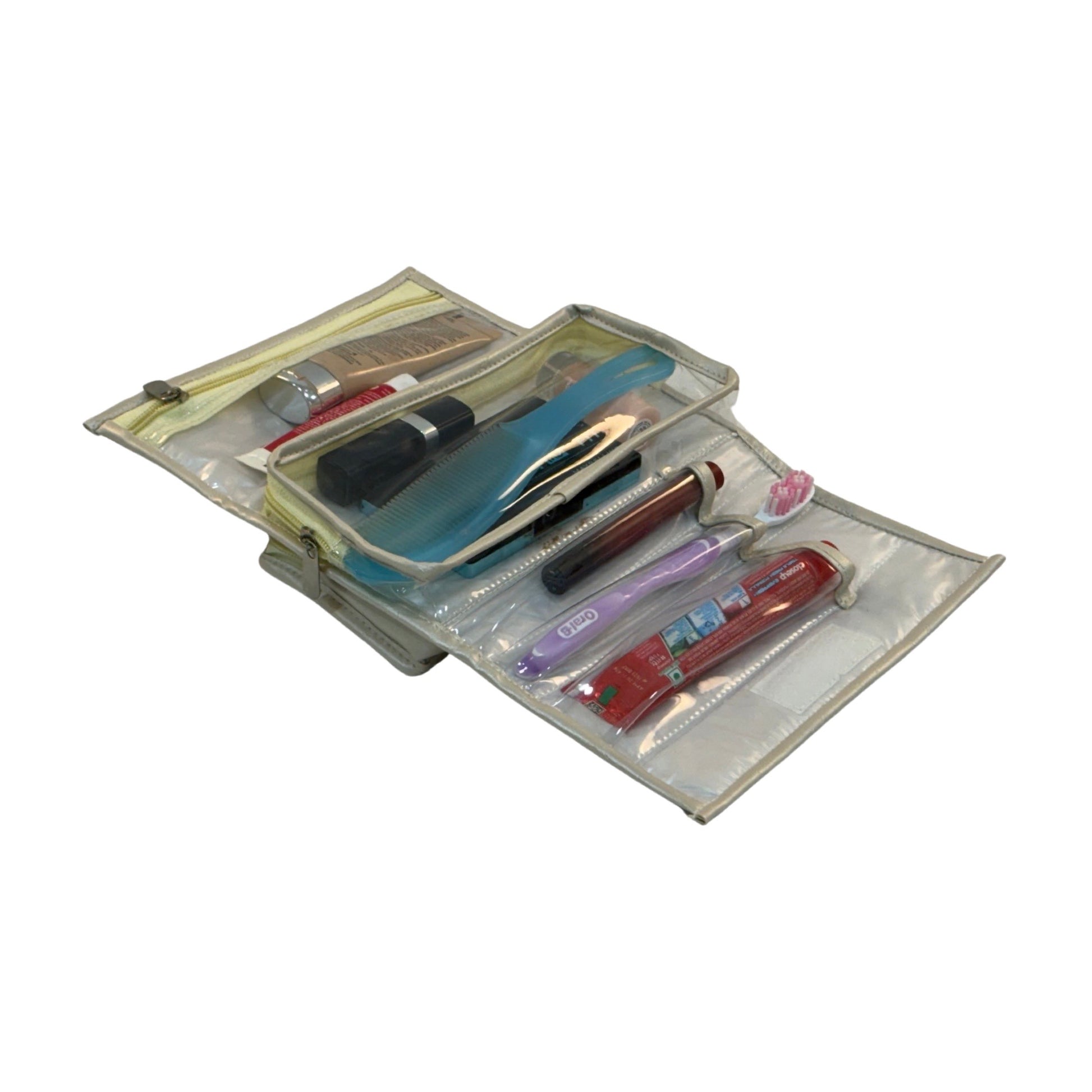 Travel light with our stylish and functional well-designed pouch. It is large enough to hold all your basic toiletries and cosmetics without taking up too much space in your purse. It come with 3 pokets and 3 other adjustment for your brush & paste